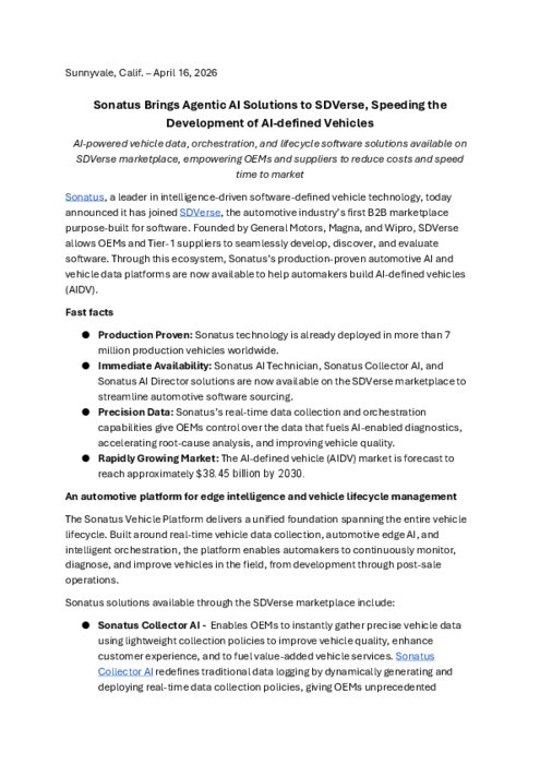 En rejoignant cette plateforme, Sonatus franchit une nouvelle étape dans sa stratégie de développement, en renforçant sa visibilité auprès des constructeurs et en facilitant l’accès à ses technologies dans un contexte de transformation accélérée vers le Software-Defined Vehicle.