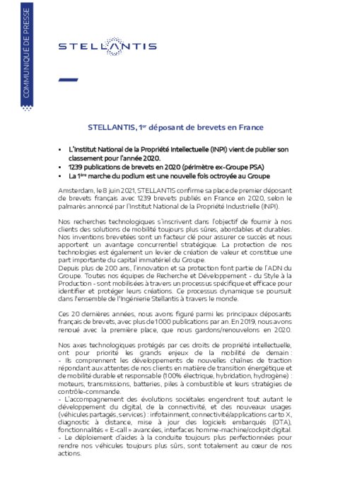 Stellantis, 1er déposant de brevets en France devant Safran et Valeo