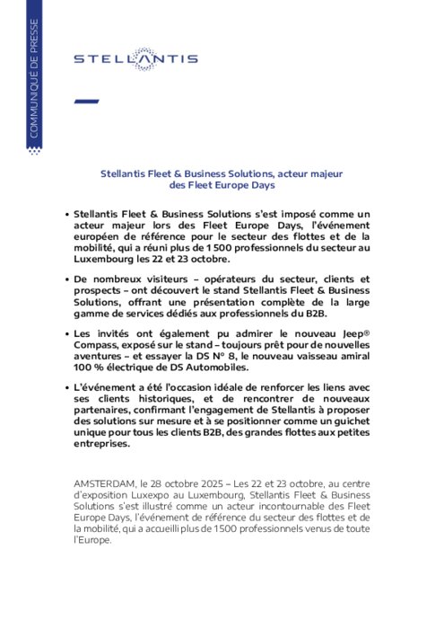 Stellantis Fleet et Business Solutions réunit 14 marques emblématiques, auxquelles s’ajoute Leapmotor, afin de répondre aux besoins variés des clients B2B, de la citadine agile au fourgon le plus vendu d’Europe. Pour illustrer la richesse de cette offre, un espace était dédié au nouveau Jeep Compass, SUV technologiquement avancé doté d’une motorisation e-Hybrid combinant harmonieusement moteur électrique et thermique pour offrir des accélérations plus franches et une conduite plus fluide, dont la production débute aujourd’hui même sur le site de Melfi en Italie.