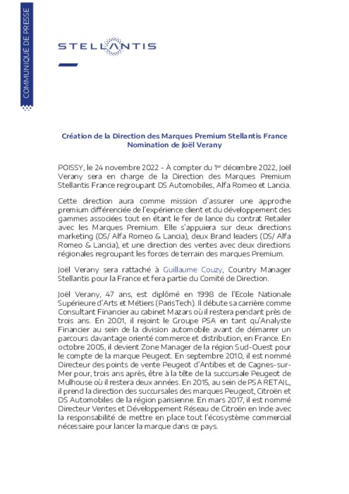 À compter du 1er décembre 2022, Joël Verany sera en charge de la Direction des Marques Premium Stellantis France regroupant DS Automobiles, Alfa Romeo et Lancia.