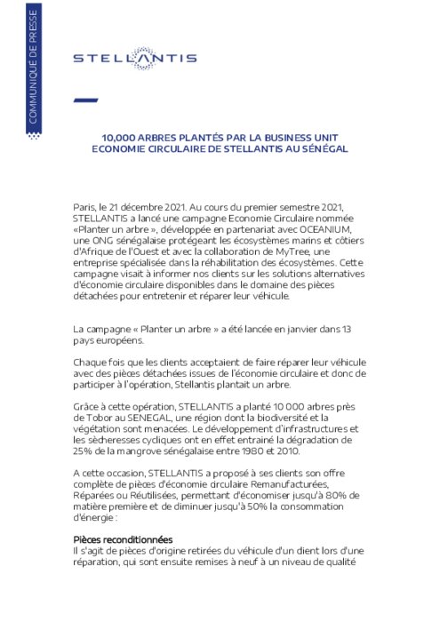 Stellantis a planté 10 000 arbres près de Tobor au Sénégal, une région dont la biodiversité et la végétation sont menacées. Le développement d’infrastructures et les sècheresses cycliques ont en effet entrainé la dégradation de 25% de la mangrove sénégalaise entre 1980 et 2010.