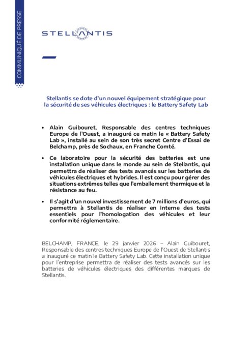 Alain Guibouret, Responsable des centres techniques Europe de l'Ouest de Stellantis a inauguré ce matin le Battery Safety Lab. Cette installation unique pour l’entreprise permettra de réaliser des tests avancés sur les batteries de véhicules électriques des différentes marques de Stellantis.