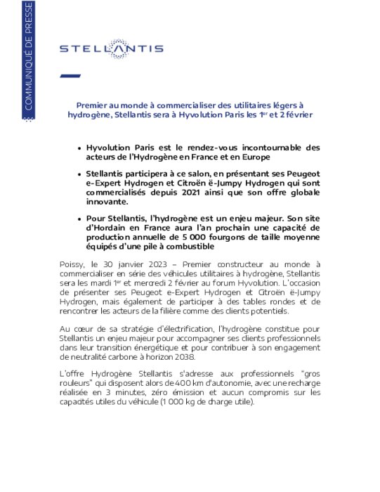 Stellantis sera à Hyvolution Paris les 1er et 2 février