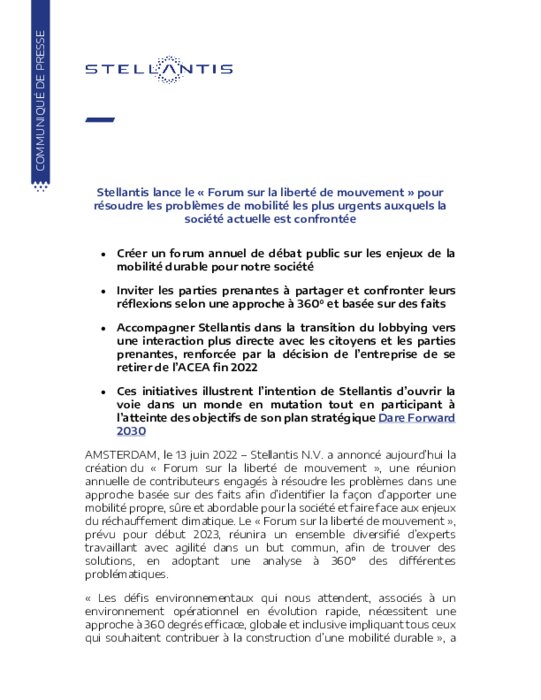 Stellantis l'a révélé de façon incidente, dans un communiqué annonçant pour début 2023 la création d'un "forum sur la liberté de mouvement", présenté comme une réunion annuelle, avec un conseil consultatif d'experts incluant "des fournisseurs de mobilité et de technologies, des universitaires, des politiciens, et des scientifiques".