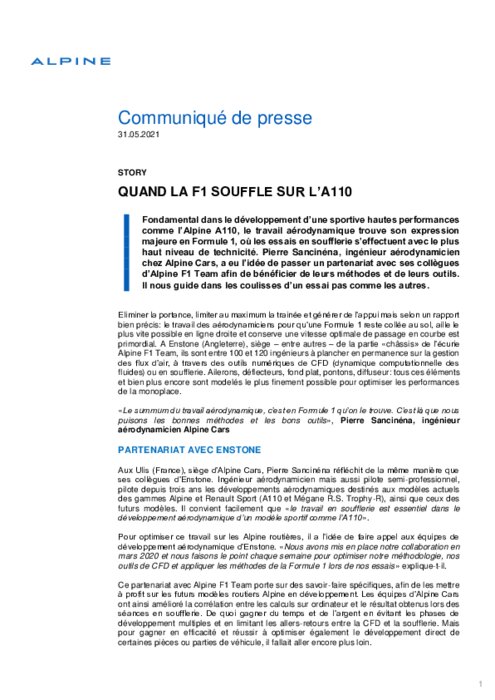 Story: Quand la F1 souffle sur l’A110