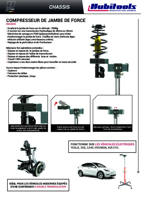 Trop juste en planning pour les grands prix de l’innovation , Hubitools présentera quand même son tout nouvel outil pour les suspensions au salon Equipauto 2022. Le StrutLifter est un compresseur de jambe de force breveté à utiliser avec le vérin de fosse.