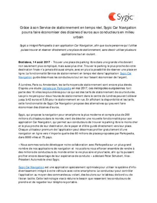 Sygic facilite le stationnement
