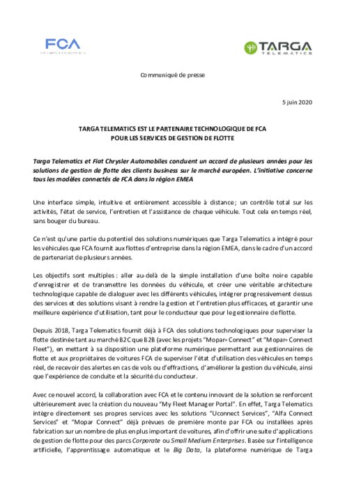 Targa Telematics & FCA s'associent dans la gestion de flotte