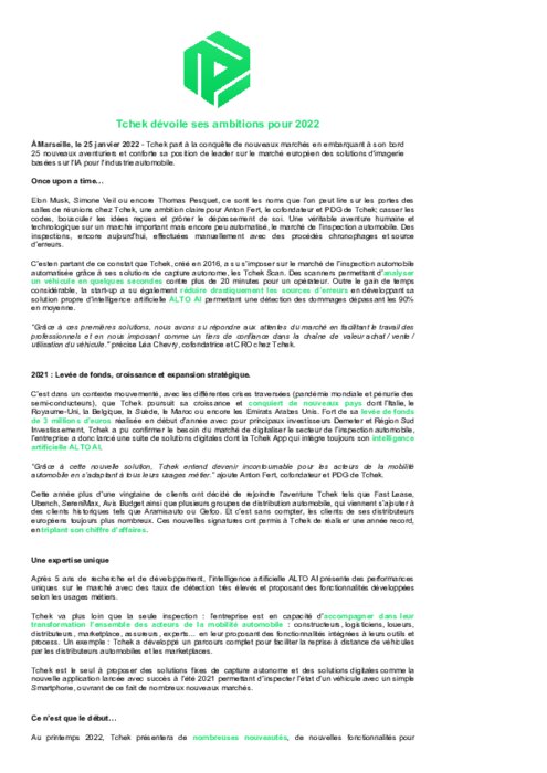 Tchek part à la conquête de nouveaux marchés en embarquant à son bord 25 nouveaux aventuriers et conforte sa position de leader sur le marché européen des solutions d'imagerie basées sur l'IA pour l'industrie automobile.