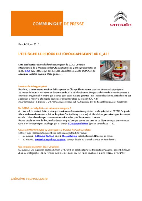 L’été est de retour et avec lui le toboggan géant du C_42. La vitrine internationale de la Marque sur les Champs-Elysées en profite pour revisiter sa saison C42° avec notamment des animations inédites comme le BATAK, et de nouveaux modèles exposés. Visite guidée…