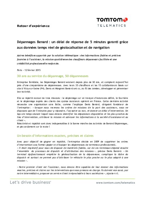 TOMTOM - Délai de réponse de 5 minutes garanti