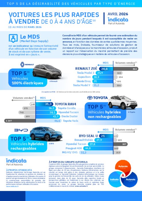 Indicata, Business Unit du Groupe Autorola, est un acteur clé de l’analyse et de la gestion des données pour le marché des véhicules d’occasion. Grâce à ses solutions avancées, gestionnaires de flotte, concessionnaires et constructeurs automobiles disposent d’outils performants pour optimiser la valorisation, la gestion des stocks et la performance commerciale de leurs véhicules.