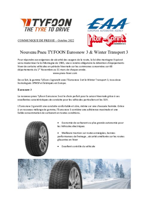 TYFOON : Pneu Eurosnow 3 & Winter Transport 3