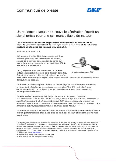 Les roulements capteurs SKF proposent un module codeur de moteur SKF de nouvelle génération permettant de prolonger la durée de service et de réduire les coûts de maintenance des moteurs à induction CA.