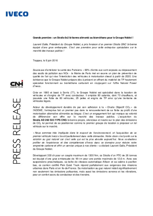 Avec sa capacité GNC de 880 litres, le Stralis bénéficie d’une autonomie pouvant atteindre 400 km, largement suffisante à une exploitation quotidienne. Par ailleurs, le Groupe Noblet va bientôt ouvrir une station de remplissage avec un compresseur à charge lente qui permettra d’alimenter en biogaz jusqu’à six camions en seulement 10 heures. 100 % compatible avec le biogaz, carburant issu de la valorisation des déchets organiques (provenant de la collecte porte-à-porte, des déchets verts... )