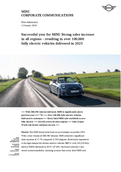 Avec 288 290 véhicules livrés, MINI affiche une progression significative par rapport à l’année précédente (+17,7 %). Plus de 100 000 véhicules 100% électriques remis aux clients. Une MINI sur trois vendue dans le monde est désormais entièrement électrique. Une croissance dans toutes les régions de vente. La marque John Cooper Works poursuit son succès.