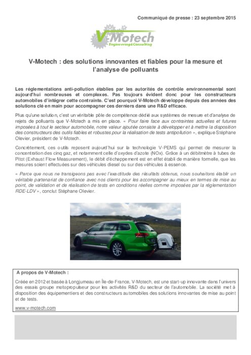Les réglementations anti-pollution établies par les autorités de contrôle environnemental sont aujourd’hui nombreuses et complexes. Pas toujours évident donc pour les constructeurs automobiles d’intégrer cette contrainte. C’est pourquoi V-Motech développe depuis des années des solutions clé en main pour accompagner ces derniers dans une R&D efficace.