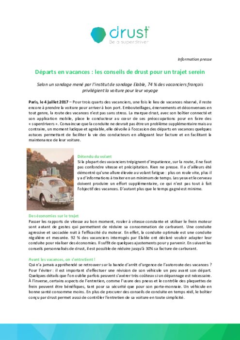 Pour 3/4 des vacanciers, une fois le lieu de vacances réservé, il reste encore à prendre la voiture pour arriver à bon port. Embouteillages, énervements et déconvenues en tout genre, la route des vacances n’est pas sans stress. Convaincue que la conduite ne devrait pas être un problème supplémentaire mais au contraire, un moment ludique et agréable, elle dévoile à l’occasion des départs en vacances quelques astuces permettant de faciliter la vie des conducteurs en allégeant leur facture.