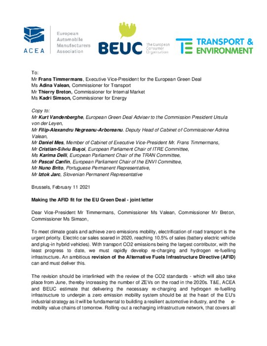 Alors que la Commission doit présenter d'ici le mois de juin des propositions législatives concrètes pour baisser ses émissions, les trois organisations la pressent également de revoir sa directive de 2014 sur le déploiement d'une infrastructure pour les carburants alternatifs.