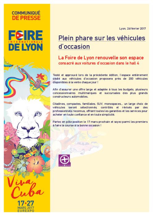 La Foire de Lyon se tiendra du 17 au 27 mars prochains et fera la part belle aux Véhicules d'Occasion. La Foire a étoffée son offre pour la deuxième année consécutive et proposera chaque jour 200 véhicules disponibles à la vente (le parc sera renouvelé tous les jours pour avoir un nombre constant de véhicules à proposer aux visiteurs).