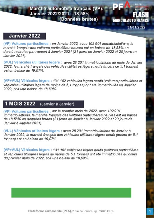 "L'année 2022 débute comme s'est terminée 2021, avec un marché automobile toujours très affecté par la pénurie de semi-conducteurs", souligne le cabinet AAAData. "La demande n'est pas en cause, puisque plus de 1,9 million de commandes ont été enregistrées en 2021, pour moins de 1,7 million d'immatriculations".