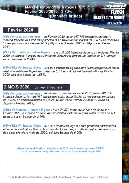 Ventes VN France: -2,7% en février, en attendant l'effet coronavirus?