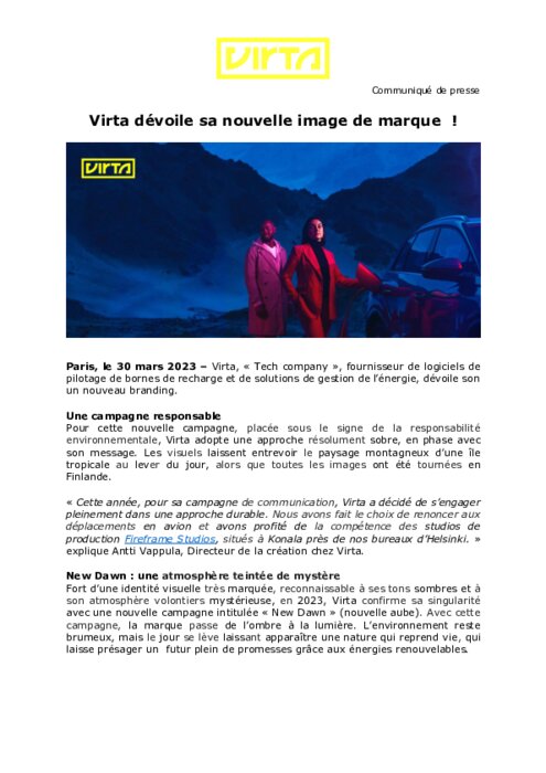 Virta, « Tech company », fournisseur de logiciels de pilotage de bornes de recharge et de solutions de gestion de l’énergie, dévoile son nouveau branding.