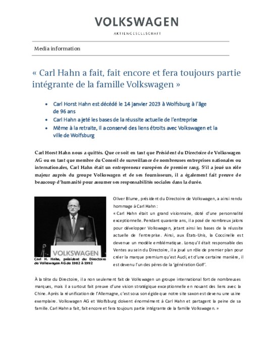 À la tête du géant automobile de 1982 à 1993, Carl Hahn a supervisé des changements radicaux qui ont contribué à propulsé l'entreprise sur le devant de la scène internationale.