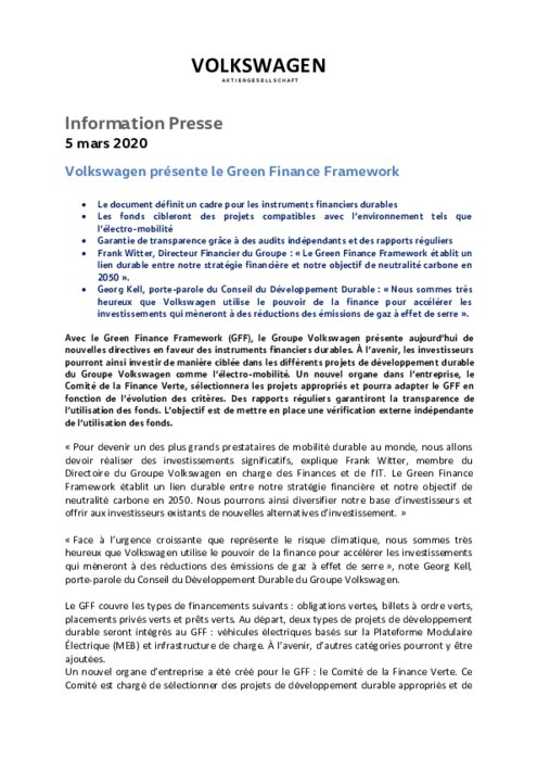 Volkswagen présente le Green Finance Framework