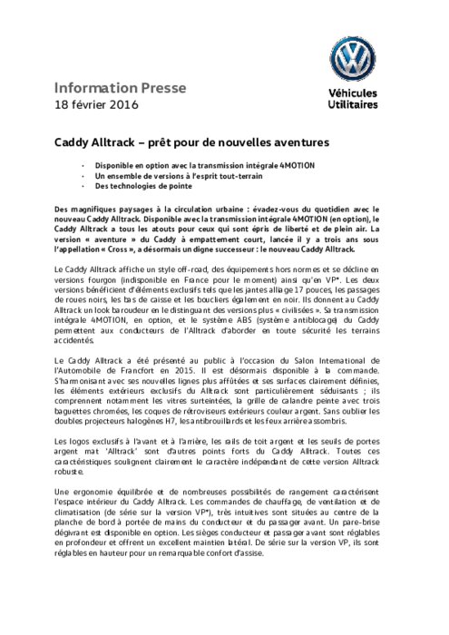 VW : Caddy Alltrack – prêt pour de nouvelles aventures