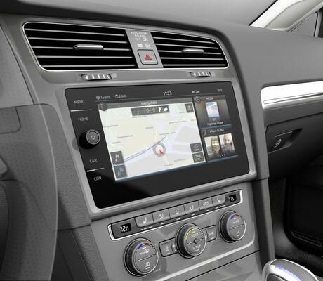 Volkswagen présente en première mondiale une version proche de la série de la nouvelle plateforme modulaire d’infodivertissement. 2. Le système phare de la nouvelle génération d’infodivertissement utilise la commande gestuelle, même sur les modèles de voiture compactes. Excepté pour quelques détails, le système d’infodivertissement présenté sur la e-Golf correspond déjà à la future version de série.