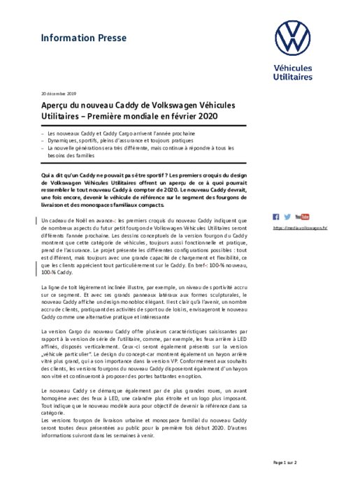 Qui a dit qu’un Caddy ne pouvait pas être sportif ? Les premiers croquis du design de Volkswagen Véhicules Utilitaires offrent un aperçu de ce à quoi pourrait ressembler le tout nouveau Caddy à compter de 2020. Le nouveau Caddy devrait, une fois encore, devenir le véhicule de référence sur le segment des fourgons de livraison et des monospaces familiaux compacts.