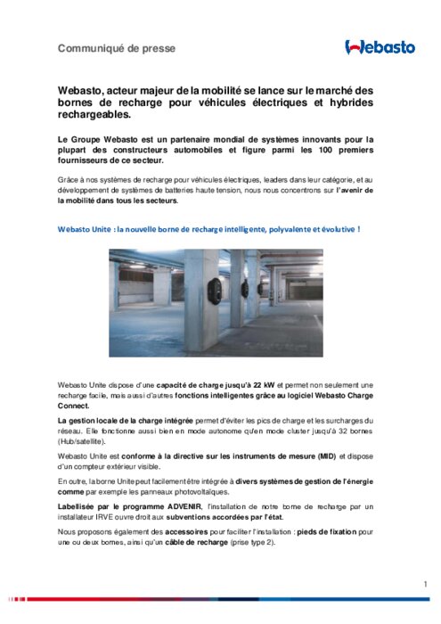 Webasto se lance sur le marché des bornes de recharge