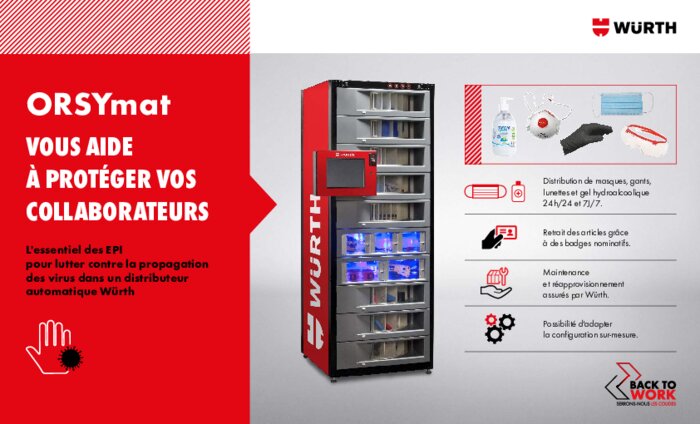 Dans le cadre de la signature d'un contrat de partenariat de 3 ans minimum sur une version Essentielle ou Premium. Seuls les produits Würth peuvent être placés dans le distributeur ORSYmat.