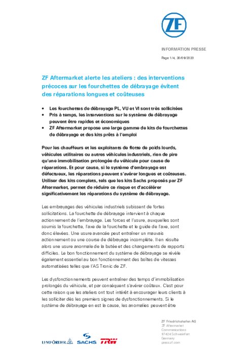 Pour les chauffeurs et les exploitants de flotte de poids lourds, véhicules utilitaires ou autres véhicules industriels, rien de pire qu'une immobilisation prolongée du véhicule pour cause de réparations. Et pour cause, si le système d'embrayage est défectueux, les réparations peuvent s'avérer longues et coûteuses. Utiliser des kits complets, tels que les kits Sachs proposés par ZF Aftermarket, permet de réduire ce risque et d'accélérer significativement les réparations du système de débrayage.