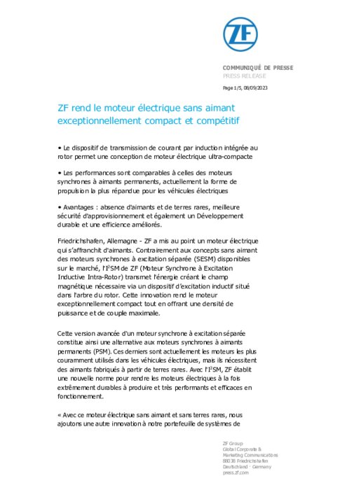 ZF : moteur électrique sans aimant compact et compétitif