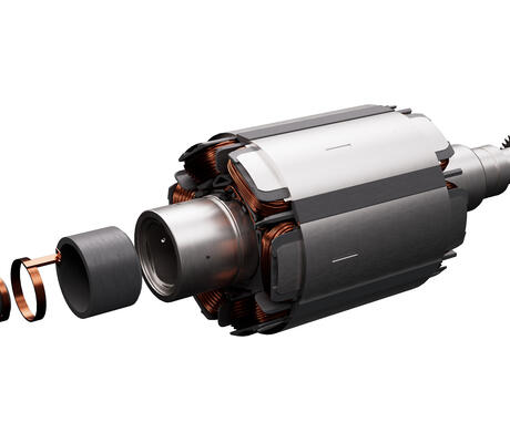 Le dispositif de transmission de courant par induction intégrée au rotor permet une conception de moteur électrique ultra-compacte.