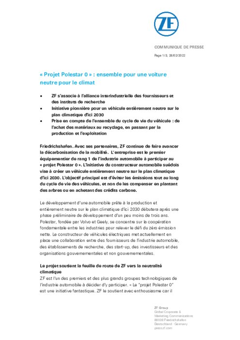 Avec ses partenaires, ZF continue de faire avancer la décarbonisation de la mobilité. L’entreprise est le premier équipementier de rang 1 de l'industrie automobile à participer au «projet Polestar 0». L'initiative du constructeur suédois vise à créer un véhicule entièrement neutre sur le plan climatique d'ici 2030. L'objectif principal est d'éviter les émissions tout au long du cycle de vie des véhicules, et non de les compenser en plantant des arbres ou en achetant des crédits carbone...