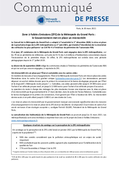 ZFE du Grand Paris : un microcrédit gouvernemental