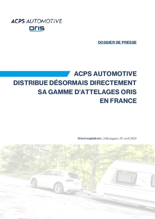 ACPS Automotive, leader du marché en Europe et leader technologique mondial pour les attelages de voitures, SUV et camionnettes, annonce consolider sa présence dans l’hexagone. L’équipementier allemand distribue désormais en direct ses attelages ORIS sur le marché de l’après-vente français.