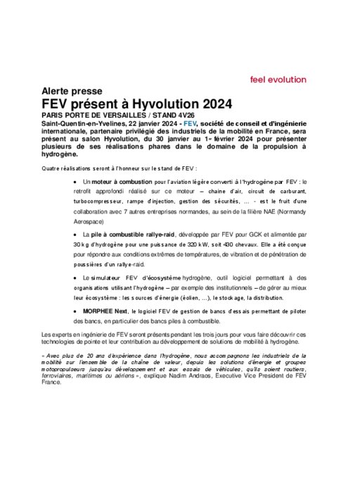 FEV sera présent à Hyvolution 2024