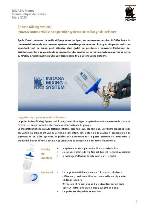 Après l’avoir annoncé la veille d’Equip Auto de Lyon, en septembre dernier, INDASA lance la commercialisation de son premier système de mélange de peinture. Pratique, simple et malin, en apportant tout ce qu’on peut attendre d’un godet de peinture, il remporte l’adhésion des distributeurs. Dans sa volonté de se rapprocher des centres de formation, Indasa organise sa démo au Garac à Argenteuil (95) et au CFA de la FFC à Villeneuve la Garenne (92).