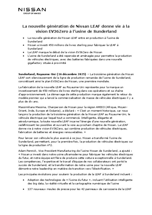 La nouvelle génération de Nissan LEAF donne vie à la vision EV36Zero