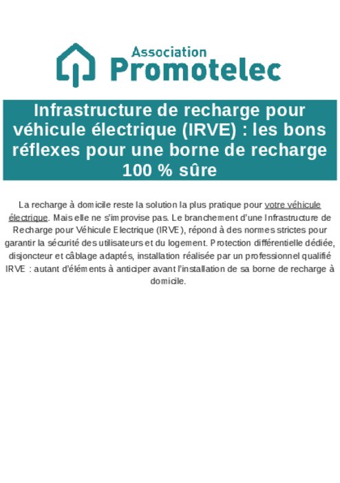 La recharge à domicile reste la solution la plus pratique pour votre véhicule électrique. Mais elle ne s’improvise pas. Le branchement d’une Infrastructure de Recharge pour Véhicule Electrique (IRVE), répond à des normes strictes pour garantir la sécurité des utilisateurs et du logement. Protection différentielle dédiée, disjoncteur et câblage adaptés, installation réalisée par un professionnel qualifié IRVE : autant d’éléments à anticiper avant l’installation de sa borne de recharge à domicile.