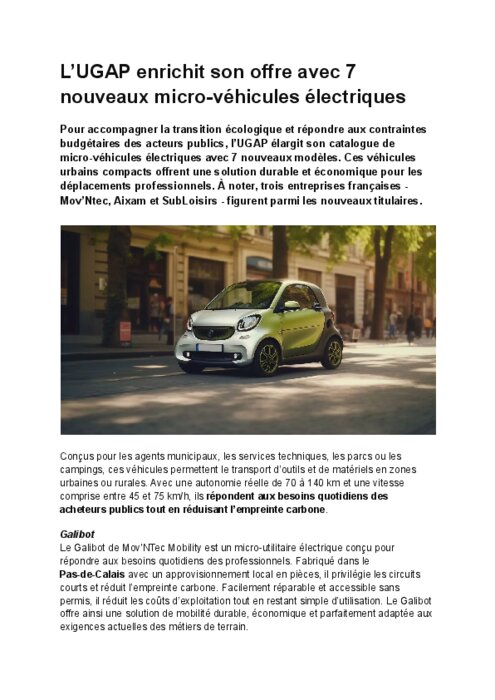 L'UGAP enrichit son offre avec 7 nouveaux micro-véhicules électriques