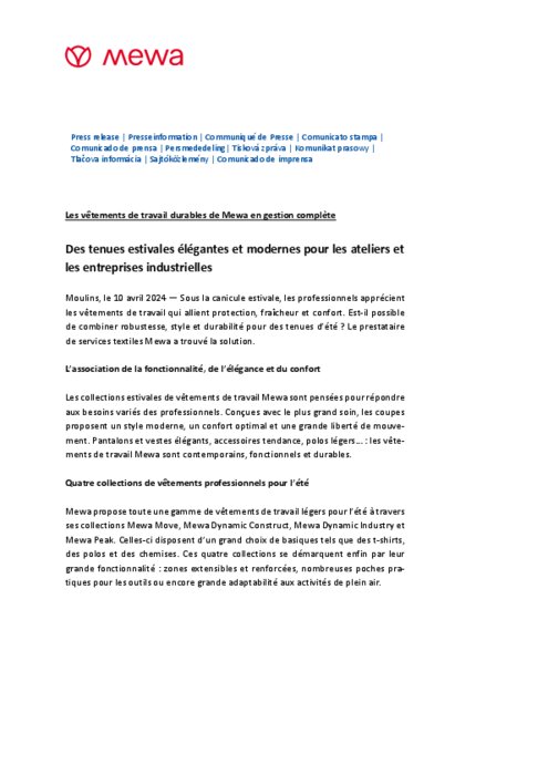 Sous la canicule estivale, les professionnels apprécient les vêtements de travail qui allient protection, fraîcheur et confort. Est-il possible de combiner robustesse, style et durabilité pour des tenues d’été ? Le prestataire de services textiles Mewa a trouvé la solution.