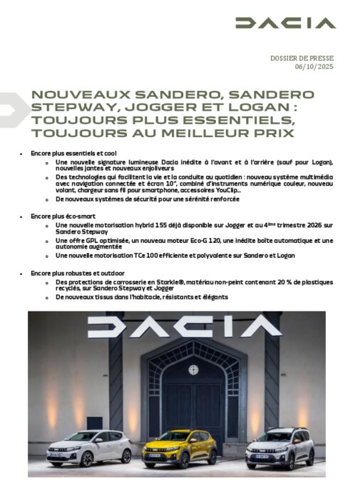 Les Sandero, Sandero Stepway, Jogger et Logan sont au cœur du succès durable de Dacia. Sandero est la voiture la plus vendue à particuliers en Europe depuis 2017. En 2024, elle fut même la voiture la plus vendue en Europe tous canaux confondus, et la première Dacia à dépasser 300 000 unités commercialisées sur une année (309 392 exemplaires, soit +14,5 % vs. 2023).