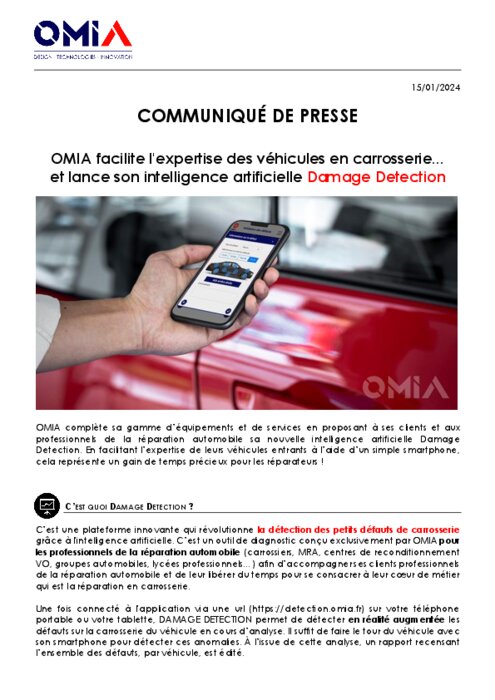 Omia complète sa gamme d’équipements et de services en proposant à ses clients et aux professionnels de la réparation automobile sa nouvelle intelligence artificielle Damage Detection.