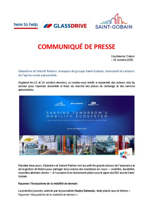 Pendant deux jours, Glassdrive et Sekurit Partner ont accueilli les grands acteurs de l’assurance et de la gestion de flottes pour partager leurs visions des mutations en cours — mobilité, durabilité, nouvelles attentes clients — à l’occasion d’un événement placé sous le signe des 360 ans de Saint-Gobain.