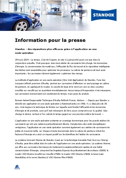 Standox : des réparations plus efficaces grâce à l'application en une seule opération